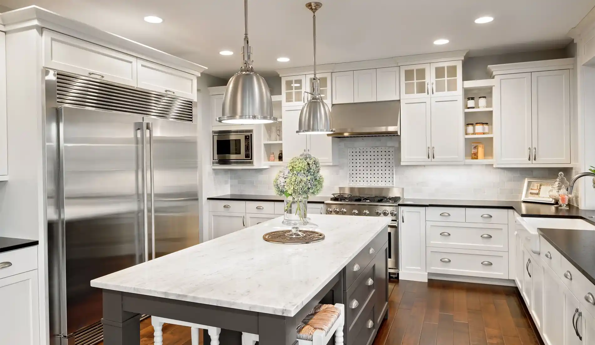 Therefore, they install vast islands to create enough seating space or lay down cooking stuff or meals. If the customer prefers, the professionals also double it into a workstation by adding open shelving on both sides. The shelves accommodate items like a grater, butcher, cutting board, etc.