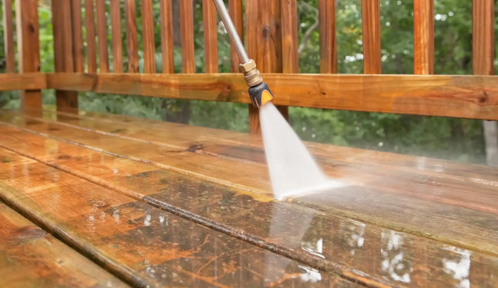If the right sanitizing solutions are used, there is no need to pressure wash the patio. In fact, the best deck cleaner helps eliminate debris, stains, and marks even quicker than power washing.